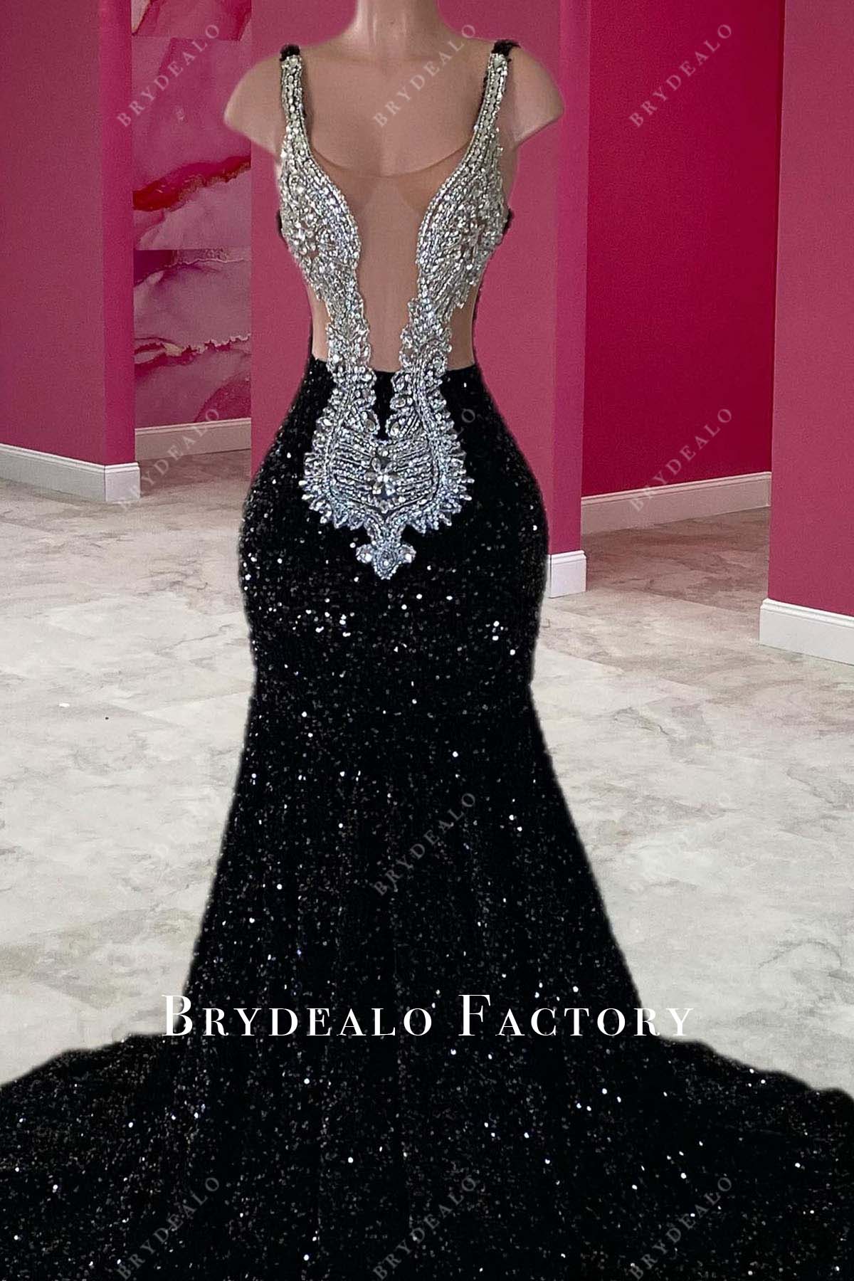 Sparkly Silver Rhinestones Black Sequined Mermaid Prom Dress , Whether youโre going for bold and daring or timeless and elegant, prom 2025 is packed with stunning trends that will have you owning the dance floor.